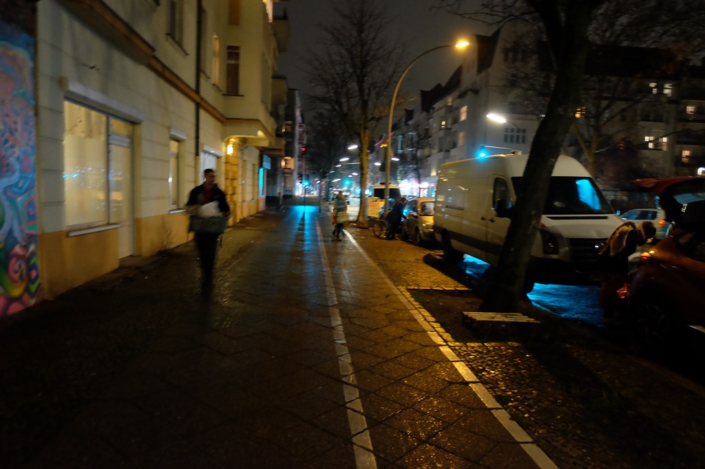 Aber jetzt ich bin geerdet worden. Von meiner Ärztin – wegen des geflickten Schlüsselbeins. Bis Ende des Jahres habe ich Fahrradverbot und das Moped musste in die Garage. Jetzt ist nicht nur die Arbeit sondern auch der Weg dahin eine Plage. Nach einem Monat habe ich schon ein paar Überlebenstechniken für das Leben Untergrund entwickelt. Immer weg von der Tür und am besten mit dem Rücken zur Wand. Keinen Blickkontakt. Dabei hilft es, sich irgendwas interessantes aufs Handy zu laden. Gerade lese ich Graham Greene „Der stille Amerikaner“, wegen der britischen Gelassenheit, die da rüber kommt – wenn dafür Platz ist und mir niemand seinen Rucksack ins Gesicht drückt. Das alles wäre unerträglich, gäbe es nicht immer eine Möglichkeit, sich ein bisschen Freiheit zu bewahren. Wer sagt denn, dass ich den ganzen Weg mit der Bahn fahren muss? Gestern bin ich einfach drei Stationen vorher ausgestiegen. Ich bin zwar nicht mehr gut zu Fuß, aber für eine halbe Stunde durch die Nebenstraßen des Wedding, unter Gaslaternen über Kopfsteinpflaster, dafür reichts immer. Natürlich vorsichtig, damit ich mir bei Eis uns Schnee nicht die Knochen breche. Vielleicht stelle ich mich beim nächsten Mal eine halbe Stunde auf ein Bier zu den Alkis und reiße ein paar blöde Sprüche: „ Immer schön die Türen freimachen! Da drin im Mittelgang ist noch ganz viel Platz, das sehe ich von hier…“