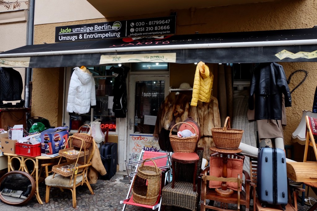 Es sei jedes Mal wieder ein schwieriger Job, wenn eine Wohnung geräumt werden muss, sagt Yasim, den ich für unser Kiez-Magazin über das Geschäftsmodell der modenenen Trödelläden befrage, die in den leeren Ladenlokalen des Wedding als Erstbesiedler und Zwischennutzer einziehen. Die Läden heißen „Entrümpelung“, „Wohnungsauflösung“ oder „Umzugsservice“. Wo immer ein Ladenlokal im Wedding leersteht (und kein Kindergarten, kein Friseur und kein Café einziehen will), kann man fast sicher sein, dass er bald voll ist mit unsortiertem Gerümpel, Umzugskartons und alten Möbeln. Diese modernen Trödler haben nichts mehr mit den schrulligen Antiquitätenhändlern und alten Büchernarren zu tun, die es im Wedding noch vor wenigen Jahren gab. Und Welten trennen sie von den Antiquitätenflohmärkten für die Touristen auf der Straße des 17. Juni oder neben dem Berliner Dom. Sie sind leidenschaftslose Resteverwerter und nur wenige versuchen noch, den Wohlstandsmüll für ihre Kundschaft ein wenig zu sortieren.