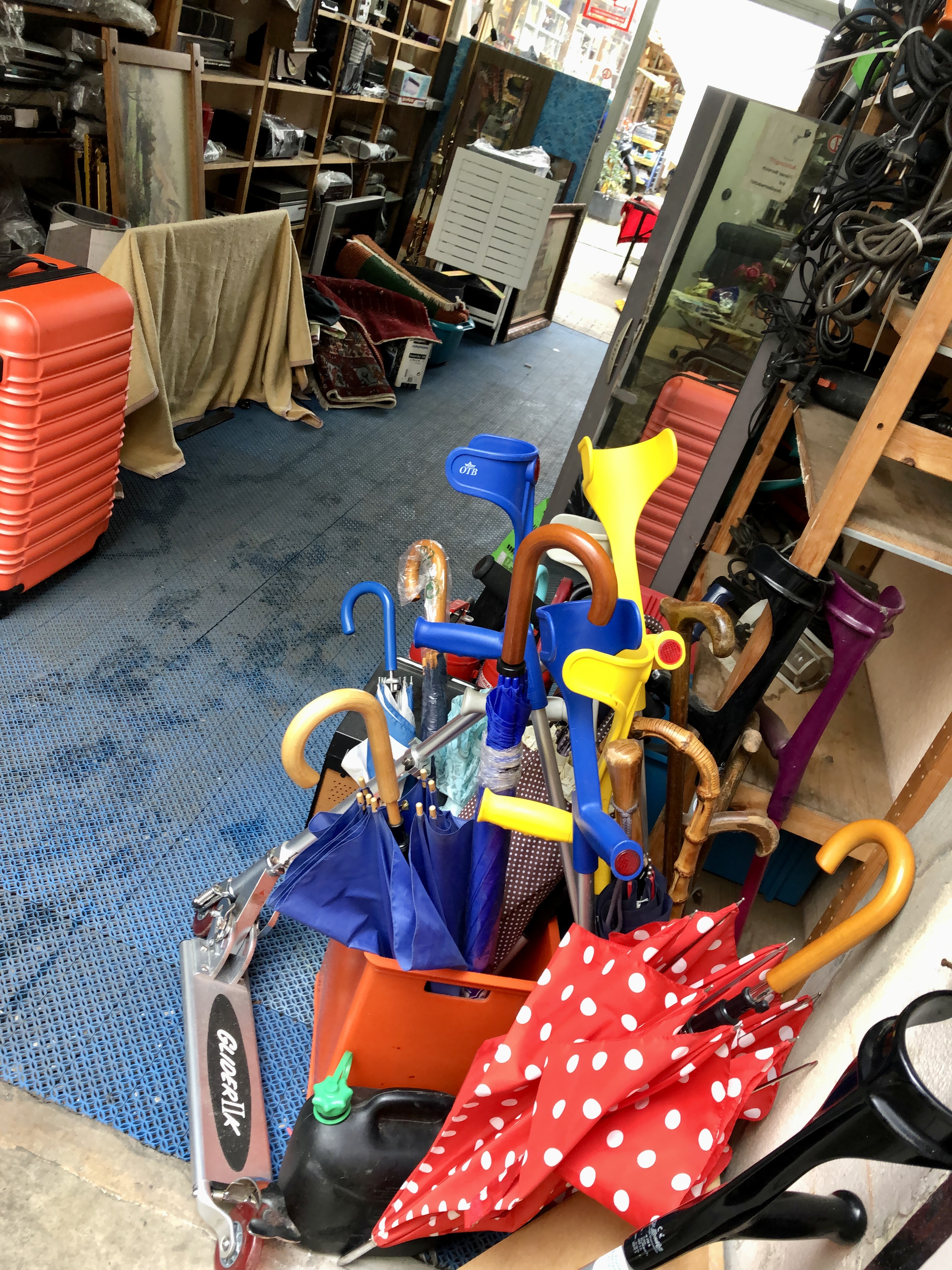 „Es muss schnell gehen und gründlich sein.“ verrät Yasim mir die Arbeitsmoral der Entrümpler. „Aber das ist ja auch eines ganzes Leben, das man da einpackt. Das muss man auch mit Respekt behandeln.“ Er sagt das pietätvoll und wirkt dabei so verbindlich und zurückhaltend wie ein Leichenbestatter. Gleichzeitig ist es ein kühl kalkuliertes Geschäft für beide Seiten: Wenn die Entrümpler Verwertbares im Nachlass finden, senkt das den Preis für die anderen Arbeiten und die Kosten der Entsorgung für die Dinge, die auf dem Müll kommen. Bevor die Sachen dann im Laden landen, kommen die professionellen Händler und Sammler zum Zug. Derzeit stark gefragt sind Erinnerungsstücke aus der Zeit des 2. Weltkriegs: Briefe, Fotos, Tagebücher. „Oft kommen auch Händler, die Sachen, die in Deutschland nicht mehr gefragt sind, in einen Container packen und nach Afrika verschiffen.“, berichtet Yasim. Röhrenfernseher, Kassettenrecorder oder Videogeräte seien dort noch beliebt, Kleidung ebenso. Auch das Internet spiele eine Rolle bei der Verwertung. Trotzdem würde der Platz im Lager nicht mehr ausreichen, der ganze Keller sei voller Bücher, obwohl Antiquariate die Literatur gleich kistenweise kauften. Und dann nennt er ein Wort, das ich auch noch in andern Läden hören werden: „Die Messies“. Menschen, die in ihrer Wohnung über 20 oder 30 Jahre Dinge ansammeln und den Überblick verlieren. Dann schweigt mein Informant, als hätte er zu viel erzählt. Ein Foto darf ich von Yasim nicht machen und auch seinen Nachnamen verrät er nicht. „Ich bin konvertiert.“, ist sein letzter Satz. Es hört sich geschäftsmäßig an. Anscheinend ist diese Info für seine Kundschaft wichtig. Von wo nach wo er religiös gewechselt ist, verrät er mir nicht.
