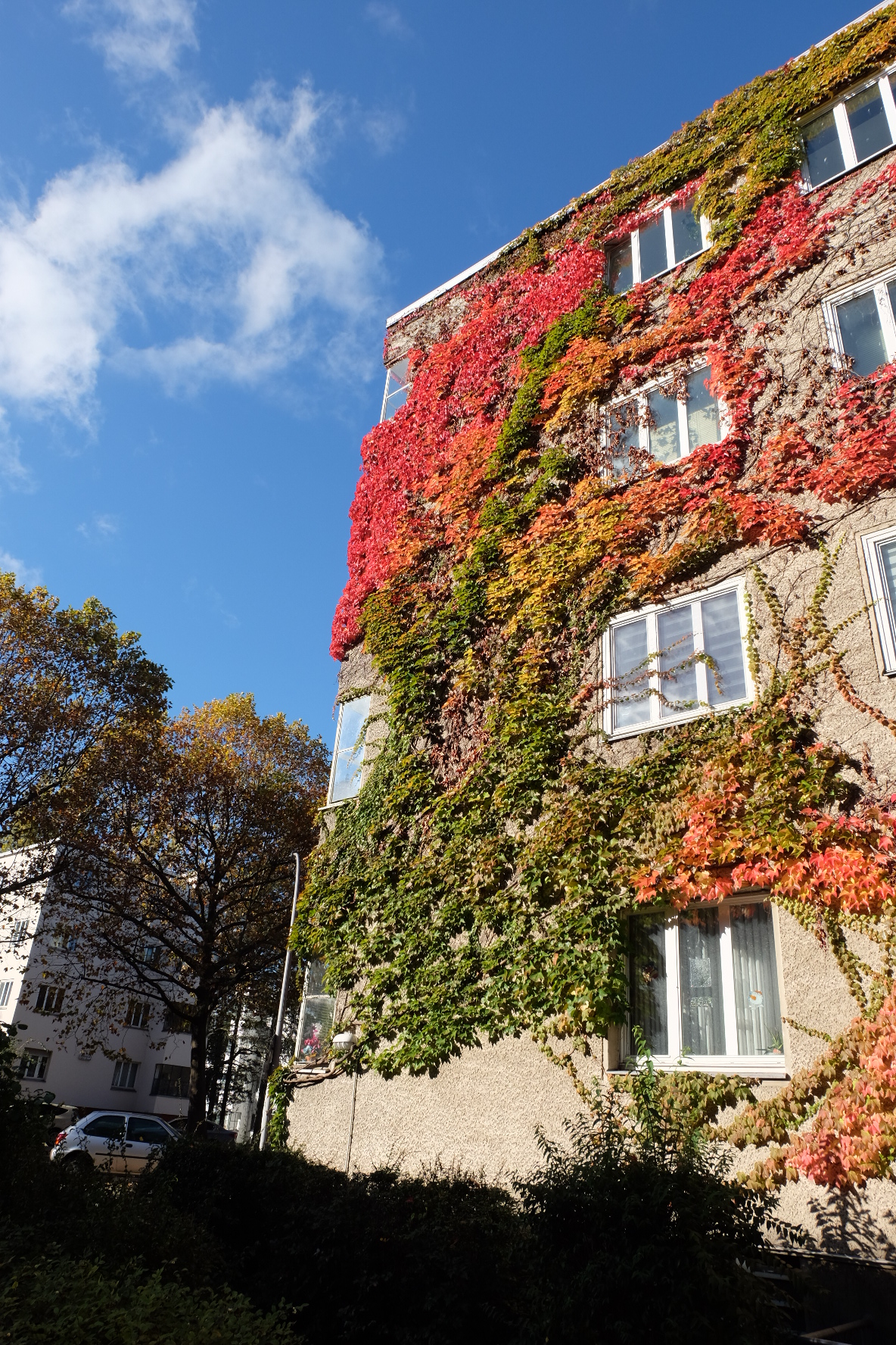 Die stille Usambarastraße träumt an diesem strahlenden Spätherbsttag von besseren Tagen. Wer die schmale Straße durch den großen Toreingang von der Petersallee betritt, merkt, dass hier die Zeit langsamer vergeht als auf der Müllerstraße oder der Afrikanischen Straße, die den östlichen Teil der Friedrich-Ebert-Siedlung umschließen. Kaum Verkehr, kein Lärm von den tosenden Magistralen des Wedding, viele alte Bäume und ein leerer Kinderspielplatz. Alle Häuser sehen hier gleich aus: Grau, vier- oder fünfgeschossig und sehr in die Jahre gekommen. Manche schon von Efeu überwuchert, mehr geflickt als renoviert.