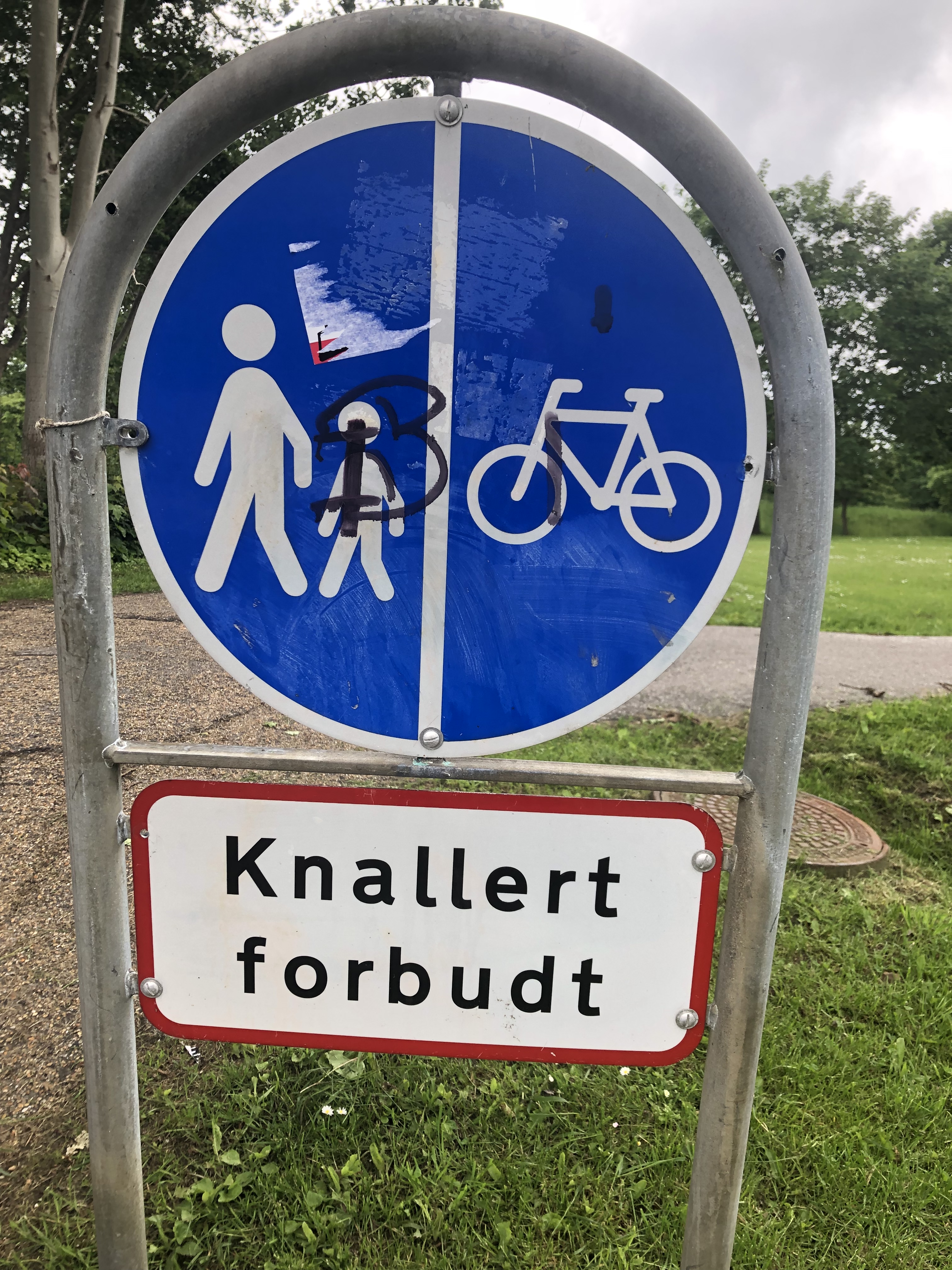 Das ist ein Schild aus Dänemark. Es bedeutet nicht „Knallerverbot“ sondern „Für Mopeds verboten“. Ein Mopedverbot würde mich hart treffen.