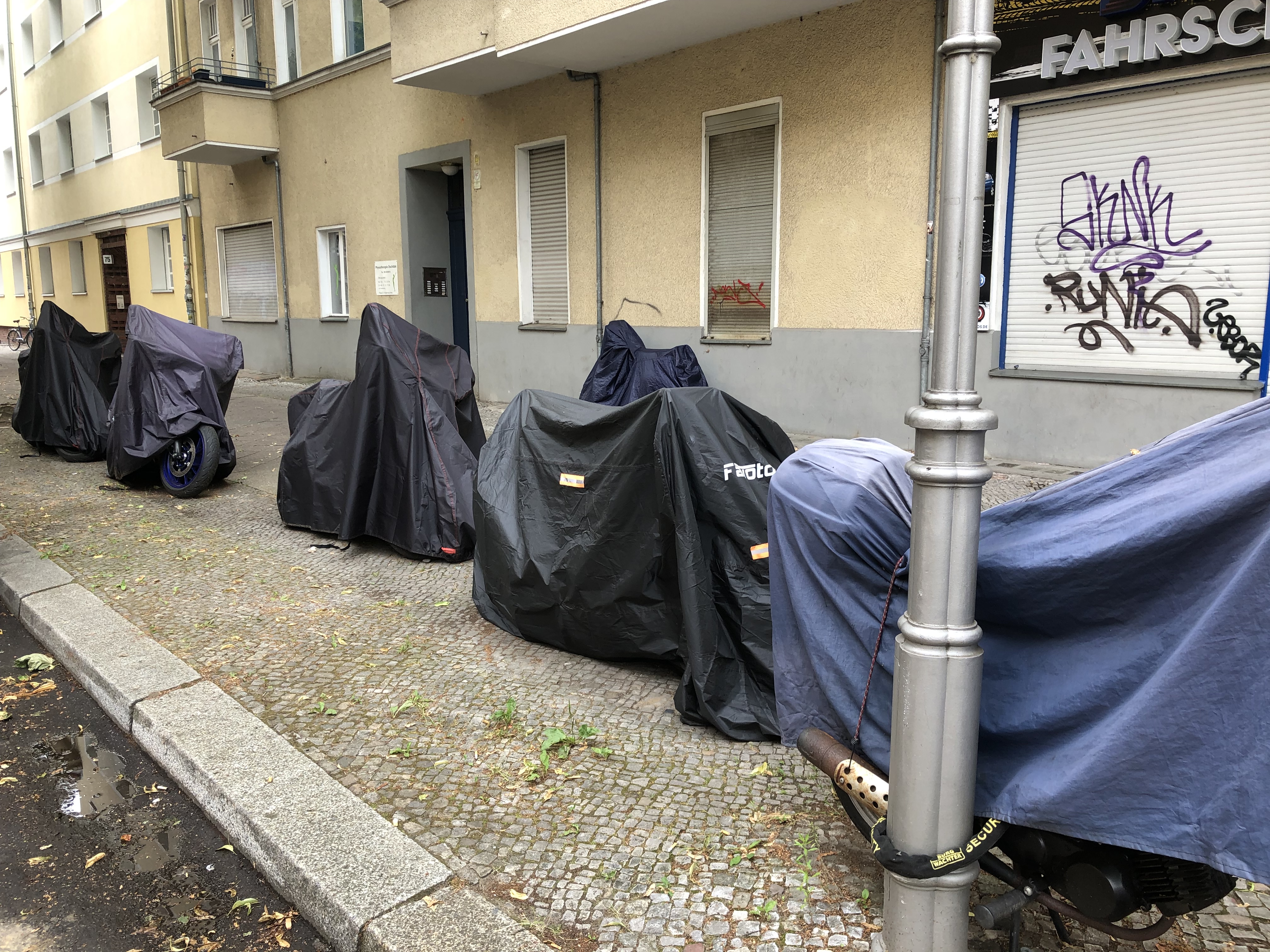 wenn der Regen fällt in der Stadt. Dann sind die Straßen leer. Die Touristen haben sich in die Shopping-Malls geflüchtet und du hast freie Bahn auf der Friedrichstraße von Nord nach Süd. Auch auf dem alten Tempelhofer Flughafen ist niemand, außer du und dein Freund. Im Sturm lauft ihr über das Rollfeld. Es ist wie ein Spaziergang auf dem Deich an der Nordsee. Ihr erzählt euch eure Krankheiten. Auf dem Hinweg werden die rechten Hosenbeine nass, auf den Rückweg die linken. Dazwischen sitzt ihr im Café 108, in dem sonst kein Platz zu finden ist, und putzt euch eure Brillen. Natürlich ist das ein Sommer, an dem die Mopeds Trauer tragen. Aber die Kastanien im Garten haben noch kräftig grüne Blätter wo im letzten Jahr nur noch brauner Mottenfraß war. Auch ich lebe auf. Neue Ideen sprießen.