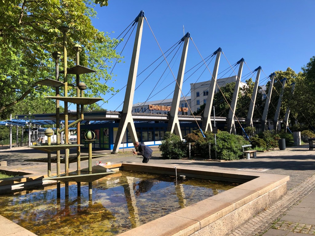 In Weimar ist sogar das Freibad schön. Es ist nagelneu, großzügig angelegt und es ist ausnahmsweise nicht nach Goethe- Schiller- Liszt- Herder- oder J. S. Bach oder dem Bauhaus benannt, wie sonst alle öffentlichen Einrichtungen in der Stadt. Es heißt einfach Schwanenseebad. Dabei war Tschaikowsky gar nicht hier. Die Schwimmringe im im Nichtschwimmerbecken sind schwarz, rot und gelb und weil Weimar ja auch Ort der Nationalversammlung der gleichnamigen Republik war, und auch dafür natürlich auch ein Museum hat, fällt es schwer, nicht auch darin etwas Symbolisches zu sehen. „Ach Gott ist das beziehungsreich, ich glaub, ich übergeb mich gleich.“ (Robert Gernhardt). Für meine Jungs ist vor allem der Sprungturm die Herausforderung. Trauen sie sich vom 5er oder gar vom 10er? Deshalb sind wir hier, weil mein Älterster mir jedesmal wenn wir im Urlaub ins Schwimmbad gehen, zeigen will, dass er sich das traut – und weil er weiß, dass ich das mitmache. Wegen Goethe auch, denn der hat Geburtstag und wegen Faust, denn der wird das ganze Jahr gefeiert. „Aber sie wollen mit den Kindern doch nicht nach Buchenwald?“ fragt der schmierige Jugendherbergsvater mit dem Froschblick gleich zur Ankunft und ich weiß nicht, wie er das meint. Immerhin sind wir hier im AfD-Höcke-Land Thüringen. Ich beschließe ihm zu mißtrauen und werde bestätigt, als ich merke, dass wir in dem natürlich wunderschönen Haus (Bürgervilla aus den 20er Jahren) die Dachkammer bekommen haben. Immerhin verrät er uns, dass der schönste Weg in die Stadt über den historischen Friedhof geht auf dem natürlich kein Geringerer als der Dichterfürst selbst begraben liegt. Die Jungs murren, nicht wegen der Historie, sondern wegen der vielen Bewegung (und weil Google-Maps einen anderen Weg vorschlägt). Aber dann lesen sie doch interessiert die Namen auf den bemoosten Grabsteinen. Außerdem habe ich eine Wette verloren und versprochen, sie in der Stadt einzulösen. Es ging um Schach. Ich hatte meinen guten Namen und 50 Euro darauf verwettet, dass wir in der Jugendherberge ein Schachspiel ausleihen könnten und wir deshalb unseres nicht von Berlin durch die halbe Republik schleifen müssten. Was im Ansatz richtig war, denn durch die Tücken der Deutschen Bahn mussten wir unsere schweren Koffer noch vor dem Losfahren mehrere Bahnsteige hoch und runterschleifen und in Erfurt beim Umsteigen gleich das Spielchen nochmal. Aber in dem edlen Eichenschrank, in dem sich die lieblose Spielesammlung der Herberge befand, befand sich nicht der Klassiker aller Spiele. Und das in Weimar. Dafür hatte die wohlsortierte und erstaunlich große Spielwarenhandlung in der Altstadt gleich fünf Varianten, was mich und die Jugend völlig überforderte (Mein Älterster schlug vor, noch mal bei Amazon zu checken, und sich das Spiel in die Herberge liefern zu lassen, was ich ablehnte.). Also gingen wir erst einmal auf dem Marktplatz ein Eis essen. Aber was ist Eis essen ohne Schach? Also schickte ich die hibbeligen drei Jungs mit einem Schein und dem Versprechen, sich in den Winkeln der Altstadt nicht zu verirren zurück zum Laden. Ich war schon mit dem Kaffee fertig, da kamen sie zurück. Sie hatten es tatsächlich geschafft, sich zu einigen und im Budget zu bleiben. Ein schönes, hölzernes Reiseschach aus Indien. Ich verlor drei Mal hintereinander, bevor wir endlich weiter konnten. Ich wollte in den Park an der Ilm, dem kleinen Flüsschen, das neben dem Schloss entlang plätschert. Und da passierte was ich mir bei der Vorbereitung der Reise vorgestellt hatte: Meine Jungs rannten runter zum Wasser, zogen die Schuhe aus und sprangen über die rutschige Staustufen. Die Sonne schien, das Wasser glitzerte und einer fiel rein, nass bis zum Hosenboden und lachte. Huckelberry Finn- Momente.