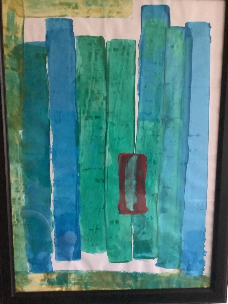Beim Frühstück sitze ich mit meinem Jüngsten. Über dem Tisch hängt seit vielen Jahren ein Bild, das ich mal während meiner Therapie gemalt habe. Weil die Therapie gut war, fühlte ich im Kunstatelier Großes in mir aufkommen, wie Lyonel Feininger wollte ich malen – durchscheinend und kalt. „Nee“, sagte die Frau neben mir am Maltisch, „Da fehlt was.“ Gibt mir einen Klecks rote Farbe auf mein Meisterwerk und zieht es mit dem Spachtel gerade. „Das Herz“.